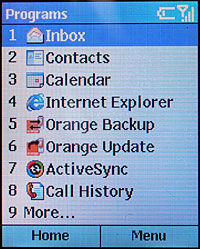 Первые впечатления от интерфейса системы связаны с тем, что ведет она себя не совсем так, как другие телефоны и смартфоны. Ни закрытие крышки, ни нажатие на клавишу отбоя не приводит к выходу в режим ожидания — захлопнув телефон, и открыв через некоторое время, можно обнаружить на дисплее те же данные, что были до его закрытия; кнопка отбоя в большинстве приложений не работает. Выйти в окно ожидания можно традиционным для Windows способом — кнопкой Home . Интерфейс построен так, что в нем не нужна кнопка отмены для выхода на предыдущий уровень — там, где это уместно, соответствующая функция адресуется на софт-клавишу. Для возврата в предыдущее окно можно воспользоваться кнопкой Back, она позволяет путешествовать по окнам недавно открываемых приложений в обратном порядке.