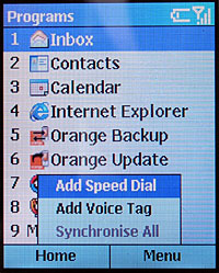 Правая софт-клавиша в режиме ожидания служит для быстрого вызова апплета Contacts — адресной книги. В главном меню она предназначается для вызова контекстного списка команд, позволяющего назначить для выделенного пункта клавишу быстрого вызова или голосовую команду для запуска.
