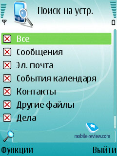 Нововведением также является довольно полезное приложение «Поиск», работу которого, думаю, в полной мере отражают скриншоты. Результат поиска по пустой строке выдаст информацию о количестве сообщений, контактов, событий календаря, заметок, дел, а также прочих файлов. Вместе с выходом модели Е50 данное приложение стало доступно и для остальных смартфонов на платформе S60 третьего издания, причем совершенно бесплатно.