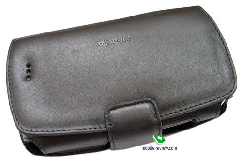 В комплект с телефоном входит кожаный чехол, он просто играет защитную роль, использовать его как кобуру нельзя, в нем нет соответствующих отверстий. В закрытом состоянии напротив динамика есть небольшая перфорация, что теоретически позволяет говорить не открывая чехла, в реальности это не удобно, качество звука низкое. Громкость звонка в чехле снижается, что является в какой-то мере минусом. Из плюсов чехла стоит отметить наличие отверстий под все управляющие клавиши, разъемы, они всегда доступны. В чехле с внутренней стороны есть кармашек с черной бархоткой (микрофибра), ей можно протирать экран от следов рук. Вместе с чехлом вес устройства уверенно переваливает за 200 грамм.