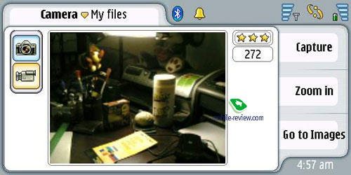 В смартфоне установлен такой же модуль как в Nokia 7610/Nokia 6670, но используется другое программное обеспечение (отличия незначительны, но сказываются на качестве картинки). Фотографии с Nokia 7710 не слишком удачны, CMOS-матрица дает относительно приемлемые результаты в условиях дневного освещения. Сравнивая качество снимков с Nokia 6630 можно говорить о проигрыше Nokia 7710. Время сохранения снимка в памяти аппарата около 3-4 секунд, в памяти MMC-карты около десяти секунд. Поддерживается регулировка яркости, контрастности, три типа качества снимков, 2х зум. В целом настройки камеры аскетичны, она одна из самых слабых среди продуктов этого класса.