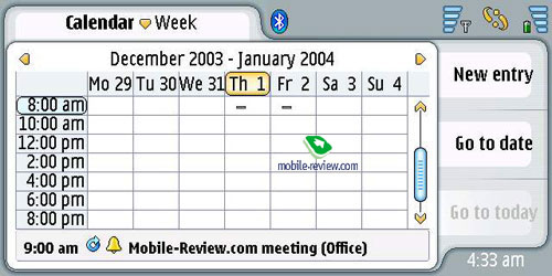 Календарь. Поддерживаются все возможные поля и предупреждения, вы можете просмотреть календарь за месяц, за неделю, день. Отдельные события могут иметь период, свой сигнал предупреждения, текстовую заметку, вы выставляете при необходимости их цикличность. Хорошей возможностью является выделение событий, точнее их статуса цветом.