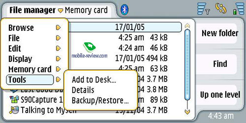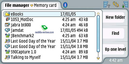 Менеджер файлов. Простое приложение позволяющее совершать все действия над файлами в памяти устройства и ММС-карты.