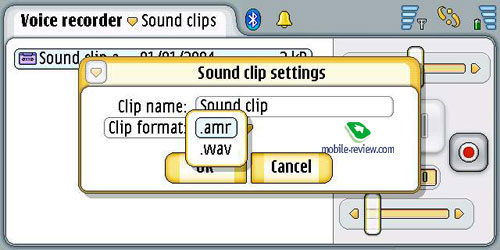 Voice recorder. Позволяет сохранять записи в формате AMR или WAV.