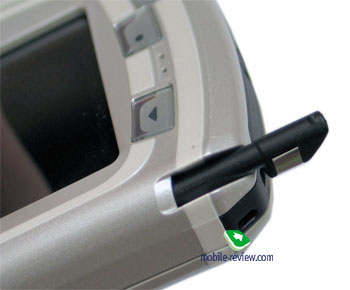 Экран сенсорный, что подразумевает работу с помощью стилуса, он встроен в боковой торец устройства. Стилус неплох, весомый, приятный на ощупь, с ним хорошо работать. Единственное, что можно делать без участия стилуса, так это набирать номер, виртуальная клавиатура большая по размерам. Но все равно приходится задействовать обе руки, иначе аппарат грозит упасть. Во всех остальных режимах работы вам придется использовать стилус. На левой стороне устройства находится навигационная клавиша с вписанной кнопкой Ок, чуть ниже клавиша вызова контекстного меню, а также вызова приложений в памяти, главного меню. Клавиша ESC располагается на противоположной стороне.