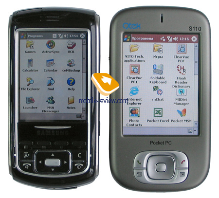Модель Qtek S110 (HTC Magician) заметно больше i750 в ширину и высоту, но толщина ощутимо меньше. Если бы не толщина – модель бы можно было назвать самым маленьким в Pocket PC.