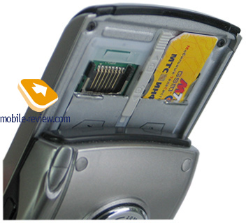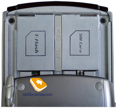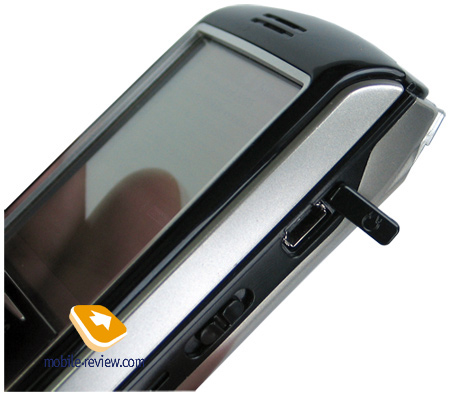 На правой стороне мы видим следующие элементы. Разъем для проводной гарнитуры (подойдут только гарнитуры Samsung), слайдер питание/Hold, красная клавиша камеры и кнопка мягкого сброса. На нижнем торце – дырка микрофона и разъем для синхронизации по USB и заряда аналогичный Samsung i300. На задней панели расположился объектив камеры, он заметно выдается из корпуса, зеркальце для автопортрета, съемный аккумулятор. В углу мы заметим гнездо стилуса. Само перо телескопическое, в целом оно удобно, но размеры его – ниже среднего. В гнезде оно сидит так туго, что случайно потерять его практически невозможно.