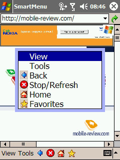 Помимо клавиши «ОК» под экраном расположилось еще три вспомогательных клавиши, на которые можно назначить по два действия. Наиболее интересная клавиша – это Smart Menu. С ее помощью во встроенных приложениях можно обходиться без софт-клавиш, не использовать стилус (вызывается список действий). Удержание этой клавиши вызывает стандартное контекстное меню. Появись такая функция год назад – это был бы прорыв, но сейчас с выходом WM 5.0 это уже не так интересно. Ведь управление одной рукой – это базовая функциональность WM 5.0, и не только для встроенных приложений.