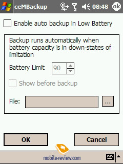 ceMBackup. При низком заряде батареи программа сохраняет все нужные данные в постоянную память, потери информации не произойдет. И здесь разработчики обошли ограничение WM 2003 SE, которое естественным образом исчезло в Windows Mobile 5.0.