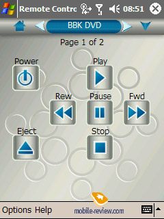 Remote Control. Утилита для управления домашней техникой. Имеется как уже настроенные профили, так и возможность «обучить» коммуникатор от пульта. Наилучших результатов можно добиться, изменяя существующие профили (можно добавлять/удалять кнопки, заново обучать).