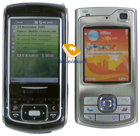 Сравнение с Nokia N80. Мы видим, что Samsung i750 массивнее, но разница не критична на фотографиях, в реальности она ощущается больше.