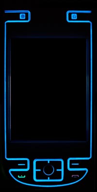 Внешность Eten G500+ солидная: черный корпус со вставками темно-серебристого цвета по бокам. Когда коммуникатор выключен, то вроде ничего выдающегося в нем нет, все строго и гармонично, но стоить его включить, как вокруг дисплея и кнопок вспыхнет полоса ярко-синего цвета. Пластик на ощупь очень приятный, все части корпуса четко подогнаны друг к другу и не скрипят, даже если Eten G500+ сильно сжать в руке.