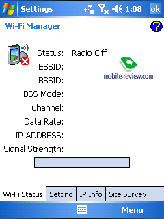 Наличие встроенного модуля Wi-Fi (IEEE 802.11b/g) уже стало стандартом для всех новых устройств на платформе Windows Mobile for Pocket PC. Работает Wi-Fi без каких-либо нареканий, проблем с ним нет. А вот инфракрасный порт в устройстве отсутствует.