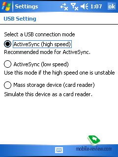 Устройство может служить в качестве кард-ридера для вставленной miniSD-карточки, то есть работать с настольным компьютером в качестве накопителя без установки драйверов или ActiveSync.