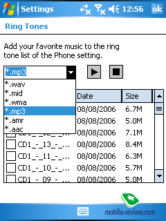 Ring Tones. Добавление мелодий, возможность поставить на телефонный звонок любую мелодию.