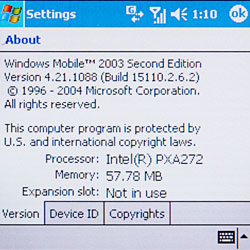 Коммуникатор работает под управлением ОС Windows Mobile 2003 SE Phone Edition. С одной стороны, это проверенная временем система, к которой уже давно придумали все мыслимые и немыслимые программы. Но с другой стороны, система уже морально устарела: пользователи требуют внедрения новой операционки Windows Mobile 5.0.