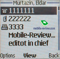 Для каждого номера можно добавить фотографию, при просмотре информации для отдельного имени вы не увидите автоматически фотографию, для ее просмотра вам придется открыть соответствующий пункт. С другой стороны, в общем списке можно установить просмотр Имени и соответствующего изображения. В таком режиме иконка невелика, дает не слишком большое представление о фотографии. Другие режимы просмотра данного списка традиционны – только имена, имена с основным номером. В общем списке могут отображаться как номера с памяти SIM-карты, так и из памяти телефона. Традиционно клавишам 2-9 можно назначить номера быстрого набора.