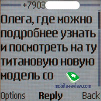 Компания считает, что полноценной заменой EMS, может считаться MMS. Действительно, данная технология становится обыденной, а с ее помощью можно создавать более интересные сообщения, включающие фотографии, цветные рисунки, мелодии и т.п. Каждое сообщение может иметь размер до 100 Кб. Реализация MMS в телефоне хороша, никаких проблем с ней нет.