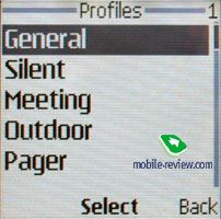 В каждом из меню коммуникатора содержится возможность переключения текущего профиля, это удобно. Второй вариант переключения профилей с помощью клавиши на наружной поверхности (режим телефона). В меню также иногда продублированы функции назначенные клавиатуре.