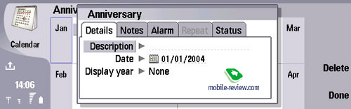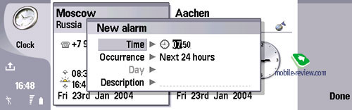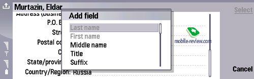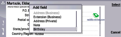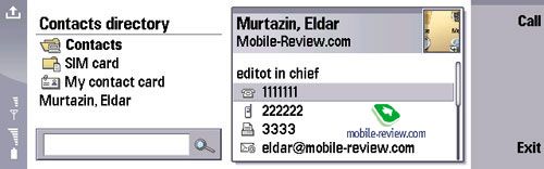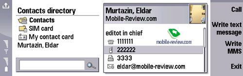 Для одного имени можно внести до 5 номеров телефонов, выбрать тип номера (основной, мобильный, домашний, офисный, факс). Первый внесенный номер становится номером по умолчанию, позднее его можно изменить по вашему желанию. В процессе первоначального ввода вы вносите только имя и один основной номер, остальные действия совершаются позднее из меню редактирования. Кому-то такой ввод покажется не совсем удобным, кто-то напротив скажет, что вводит только один номер на одно имя. Будут правы и те и другие. Учитывая, что подобный ввод реализован во всех телефонах Nokia, скажем с уверенностью, что он не составляет проблем. В качестве дополнительной информации к каждому номеру можно занести адрес электронной почты, адрес сайта, почтовый адрес, текстовую заметку. Среди новых функций стоит отметить USER ID, это идентификатор пользователя для сервиса присутствия. В целом своего рода аналог ICQ, который сигнализирует о том, что тот или иной пользователь из вашего списка доступен в данный конкретный момент. Насколько это будет интересно, неясно.