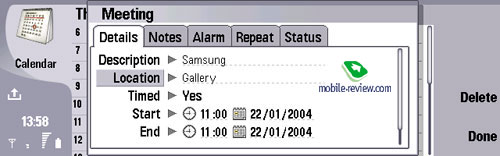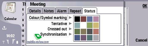 Календарь. Поддерживаются все возможные поля и предупреждения, вы можете просмотреть календарь за месяц, за неделю, день. Отдельные события могут иметь период, свой сигнал предупреждения, текстовую заметку, вы выставляете при необходимости их цикличность. Хорошей возможностью является выделение событий, точнее их статуса цветом.