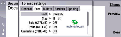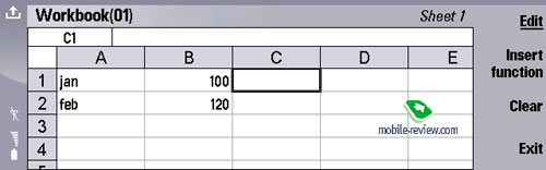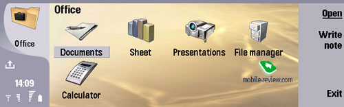 Принцип работы интерфейса. Все достаточно просто и интуитивно понятно, вы вызываете нужное приложение и начинаете работать с ним. Джойстиком можно выделять текстовые фрагменты, из основного меню, либо клавиатурной комбинацией копировать текст, вставлять его в нужные места. Роль софт-клавиш справа от экрана для текущих функций, их назначение различно в каждом случае.