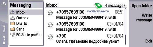 Сообщения. Аппарат поддерживает SMS-сообщения, соединенные сообщения, Nokia Smart Messaging. Все предельно просто и понятно, та же организация в обычных телефонах компании, здесь работать с текстом проще за счет наличия клавиатуры.