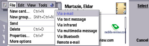 Возможности соединения. В телефоне есть ИК-порт, поддерживается bluetooth (все профили, которые можно вообразить, но совсем уж экзотика не проверялась). Передать с телефона и на телефон можно любой файл, это не вызывает никаких затруднений. В телефоне есть поддержка EDGE, что не очень актуально сегодня, но уже во второй половине 2005 года может стать интересным во многих странах.