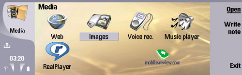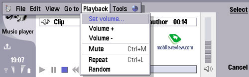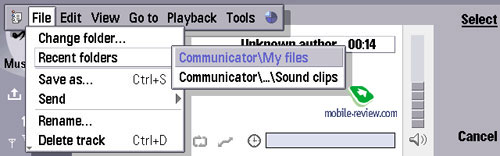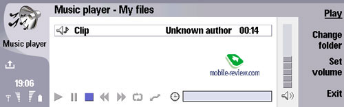 Music Player. Позволяет проигрывать большинство форматов, стандартный выход выводит стерео звук. Из очевидных недостатков работа только с одной выбранной папкой (список последних просмотренных папок доступен из меню, что является плюсом). Применять Nokia 9300 в качестве мр3 плеера можно, но смысла в этом мало.
