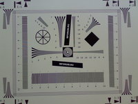Тестовая таблица предназначена для оценки качества связки "объектив-матрица". В позициях 1, 2, 3 можно получить количественную оценку разрешающей способности камеры: цифры рядом с линиями показывают количество линий х100. Место, где отдельные линии уже не различимы, и есть показатель разрешения. В позициях 1, 2, 3 можно увидеть разрешение по короткой стороне кадра по горизонтали, вертикали и диагонали соответственно. Например: если на фигуре 1 линии сливаются рядом с цифрой 8, то это означает разрешение по вертикали 800 линий. При соотношении сторон 0,75 (размер кадра 1600х1200 точек) получаем фактическое разрешение снимка 1067х700 точек, что составляет примерно 0,85 Мп. В позиции 4 и аналогичных ей можно посмотреть хроматические аберрации - фиолетовые и зеленые ореолы вокруг объектов. Чем лучше объектив, тем менее заметные ореолы. В позиции 5 можно увидеть, правильно ли отображаются окружности, с какими искажениями прорисовываются диагональные линии. А в позиции 6 наблюдается муар - оптическая иллюзия, возникающая при совмещении регулярного (например сетчатого) рисунка оригинала с регулярной решеткой фотосенсора камерофона. В дополнении ко всему общий вид таблицы может показать геометрические искажения от оптики, известные как "бочка" и "подушка" (выгнутости по бокам и по вертикали). |
