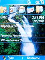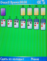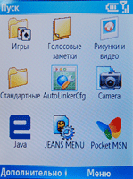 Экран телефона заслуживает высших похвал – картинку такого качества редко можно увидеть. И не удивительно, ведь разрешение экрана составляет 240х320 точек, а количество отображаемых оттенков равно 65 000 штук. Но из-за того, что дисплей выполнен по технологии TFT, его не обошли и проблемы этой технологии – он имеет очень маленькие углы обзора, что становится заметно даже при небольшом отклонении от перпендикулярного взгляда. Из настроек экрана пользователю доступно лишь изменение темы и фонового рисунка, а для экономии питания можно уменьшить яркость подсветки.