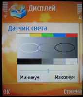 Размер дисплея 352*416 пикселей, да-да, я не ошибся с цифрами :), он отлично просматривается под любым углом и не выцветает на солнце. У экрана есть интересная фишка – автоматическая регулировка яркости и контраста в зависимости от внешнего освещения, данные о освещении поставляет датчик, который находится над динамиком на лицевой панели. Данное приспособление предназначено в первую очередь для уменьшения нагрузки на аккумулятор, который и без того есть чему разряжать, а также для того, чтоб в темное время подсветка не заслепляла само изображение.