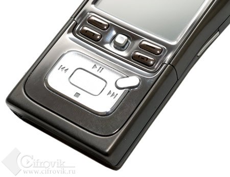 Под дисплей вынесены всего четыре кнопки – две софтовые, назначение которых изменяется в зависимости от запущенной программы, и две стандартные клавиши – приёма/посыла вызова и отбоя. А привычные для семейства S60 кнопки редактирования, системного меню и С расположены в весьма непривычных местах. Две из них – редактирования и «С» – убраны на основную клавиатуру, находящуюся под сдвижным флипом. Кнопка же вызова меню убрана под большой палец правой руки, на верхнюю часть боковой панели корпуса.