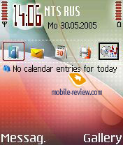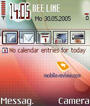 Помимо изменений, которые включает Feature Pack 3, имеется рад дополнительных надстроек, унаследованных от Nokia 6680/6681. Это активный слайдер, открытие которого активизирует камеру и, основное изменение, приложение Active Standby. Это аналог стартового экрана Today на Windows смартфонах. Все достаточно логично – пять иконок для быстрого запуска приложений. По ним можно перемещаться джойстиком, список этих пяти программ можно изменять самостоятельно, настроить стартовый экран под себя. Ниже располагается список предстоящих дел, задачи (to do). Если включен плеер, то нижней строкой отображается название композиции, которая в настоящий момент играет.