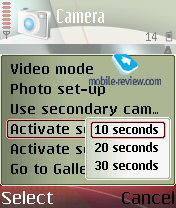 После нажатия на центр джойстика или дополнительную торцевую клавишу для съемки в портретном режиме (служит кнопкой спуска) до момента сохранения фотографии проходит 3-4 секунды, по сравнению с Nokia 6680 скорость не изменилась. Возможно сделать сессию из 6 снимков подряд (sequence mode). Устройство можно поставить на таймер (10, 20 или 30 секунд) и сфотографировать себя с друзьями, например (нижний торец скошен, так что придется искать подпору).