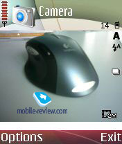 Как мы уже сказали, экран служит видоискателем. Сверху в правом углу отображается количество оставшихся фотографий, которые поместятся в память. Столбец иконок справа – выставленные настройки (режим вспышки, разрешение фотографий, предустановленный режим). Отклонение джойстика «вверх»/«вниз» управляет цифровым зумом, «влево»/«вправо» - вспышкой. На модели Nokia 6680 отклонение «влево»/«вправо» переключало между фото и видео режимами, что было весьма удобно.