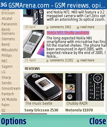 Без сомнений, одним из важнейших приложений на N80 является Nokia веб-браузер, который отображает веб-страницы также, как и на настольном ПК. Браузер поддерживает Javascript, вполне корректно отображает текс, таблицы и изображения. В целом, по сравнению с веб-браузерами выглядит намного предпочтительней, правда стоит отметить, что, все же, по сравнению с Opera mini, уступает в скорости загрузки страниц.