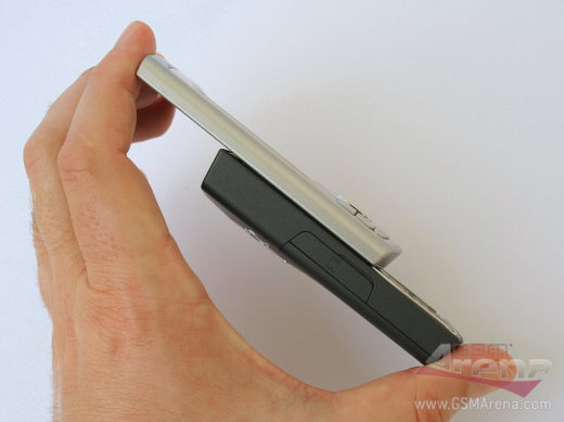 Модель будет доступна с двумя видами верхней части корпуса, которые будут отличаться друг от друга только цветовым решением с жемчужным или стальным оттенком. Остальная часть корпуса, за исключением цифровой клавиатуры, которая имеет белую рамку вокруг кнопок, изготовлена из черного пластика, и практически не собирает следов от отпечатков пальцев. Нижняя часть выдвигается мягко и фиксируется в полностью открытом и закрытом состоянии. Боковые грани закруглены, что делает телефон удобней, когда держишь смартфон в руке.